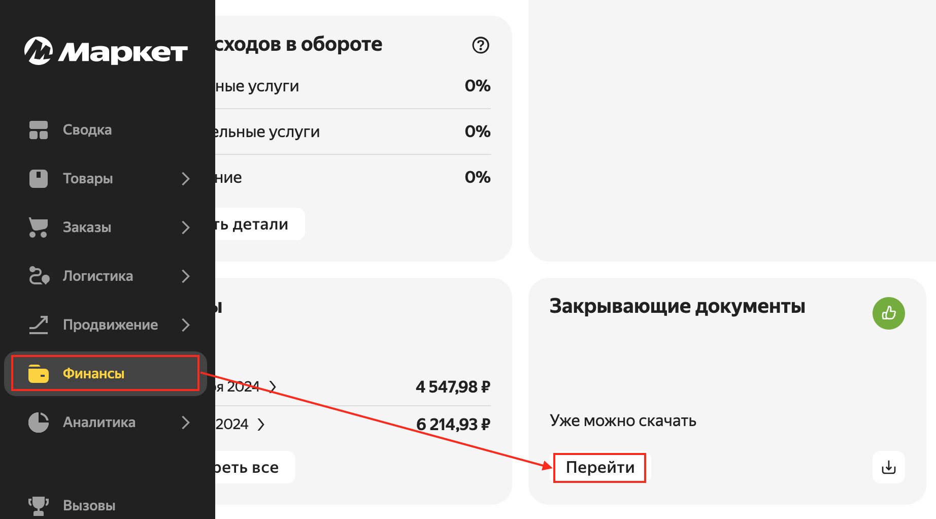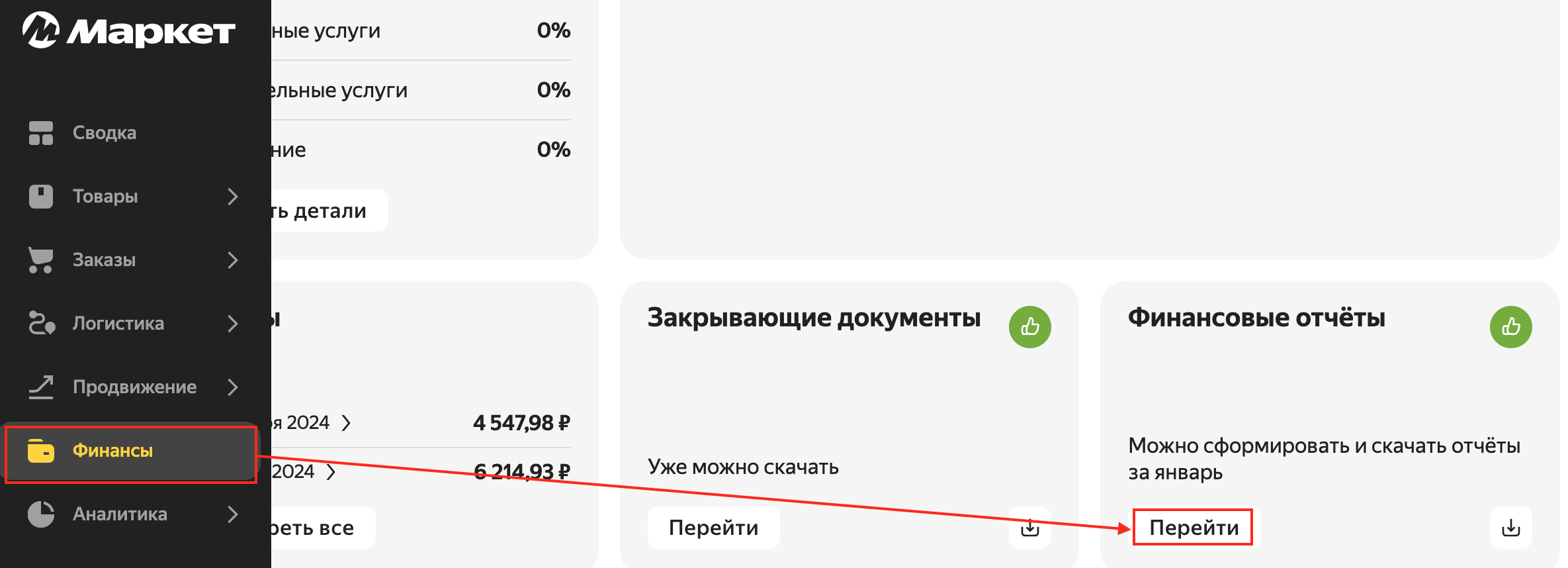 Полностью сверить выручку вместе с баллами по закрывающим документам не получится (в них нет баллов, только реальные деньги), для этого нам потребуется Отчет по платежам. Перейдите в раздел Финансовые отчеты: