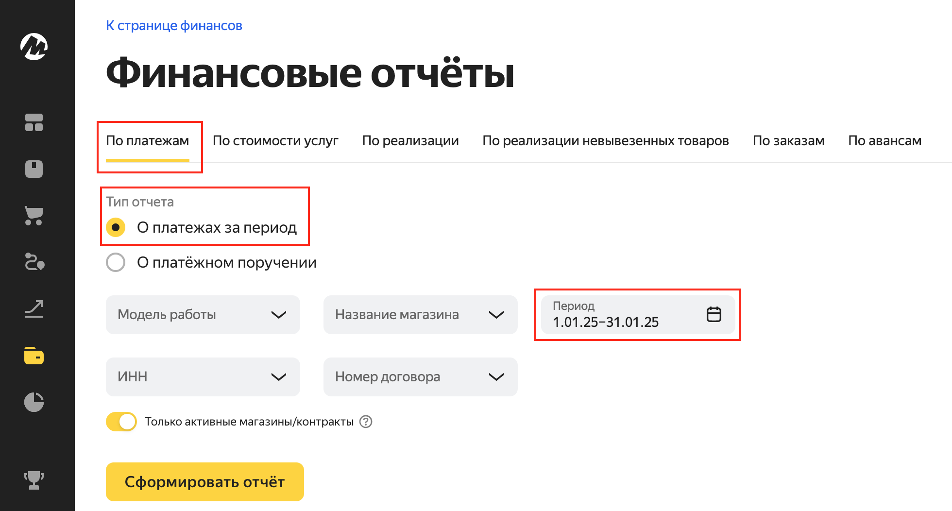 Сформируйте отчет за нужный период: